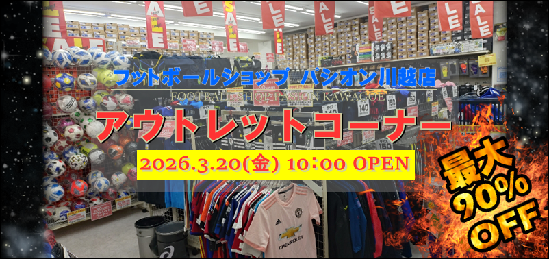 ⚽フットボールショップパシオン川越店 3/20(金) アウトレット特設コーナーOPEN